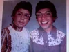 A young boy with wet, reddish-blonde hair at the beach, shirtless, smiling and looking down, with a background of clear sky and ocean.